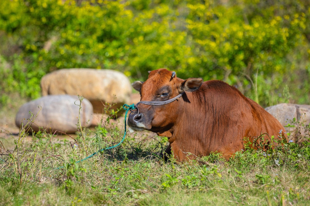 熟悉的老屋不知勾起了多少人的美好回忆。老屋门前还有一头老牛,悠闲地坐在草地上,晒着太阳,一派美好的乡村田园风光。