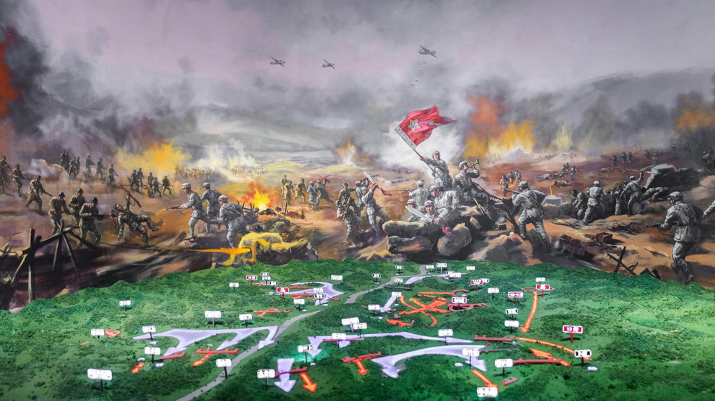 以 于都 为起点,渡过 于都 河,红军一路上浴血湘江、强渡乌江、飞夺 泸定 桥、翻雪山过草地,在敌人重兵围追堵下,一走就是两万五千里,最终到达 陕北 ,走出了 中国 革命新局面。