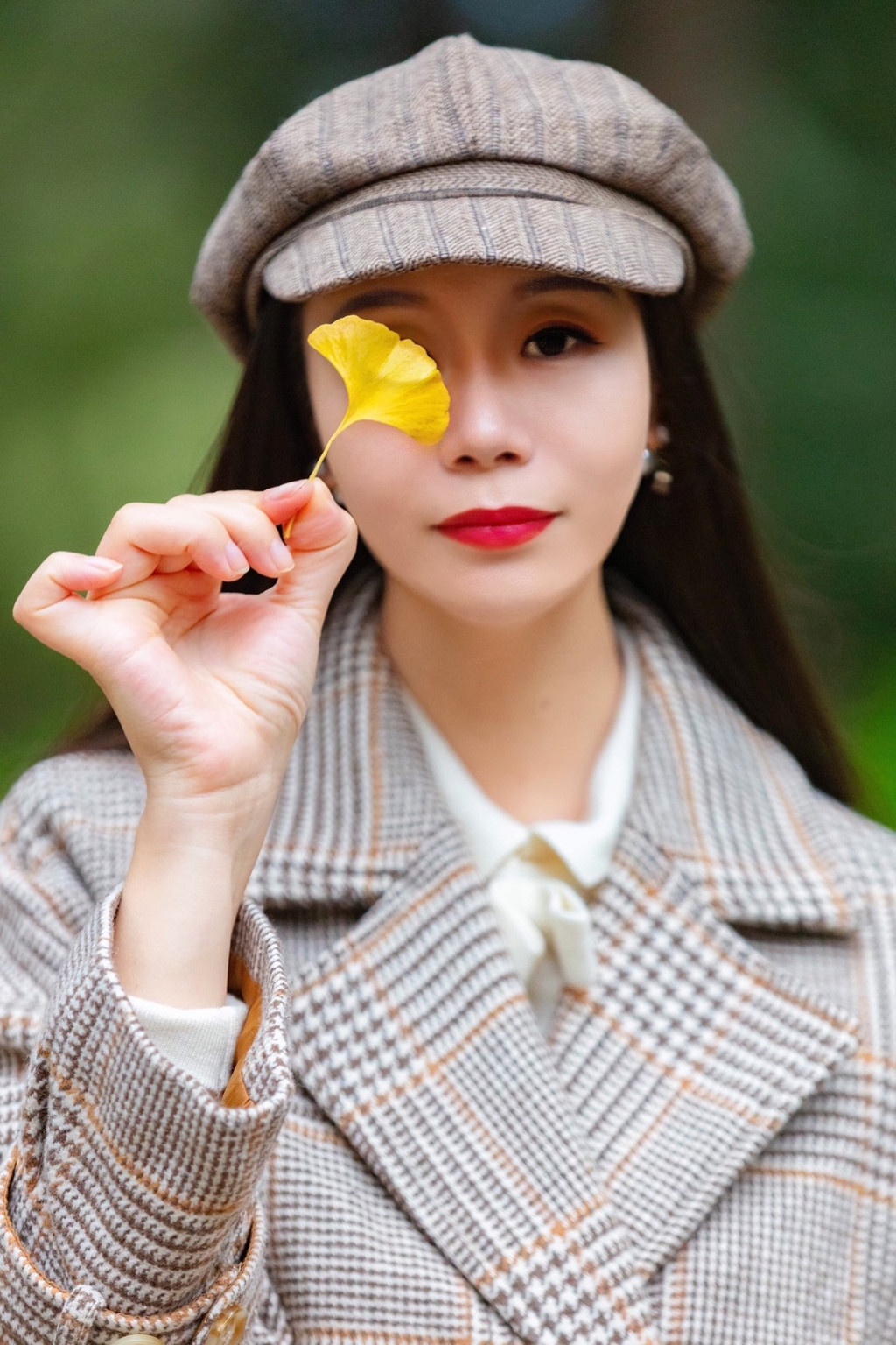 公园内有银杏树,雨下完后落叶纷纷落下。捡起一片绿色的银杏叶,只见它的边缘已经泛起了一条淡淡的黄色花纹,好像姑娘的黄头巾。