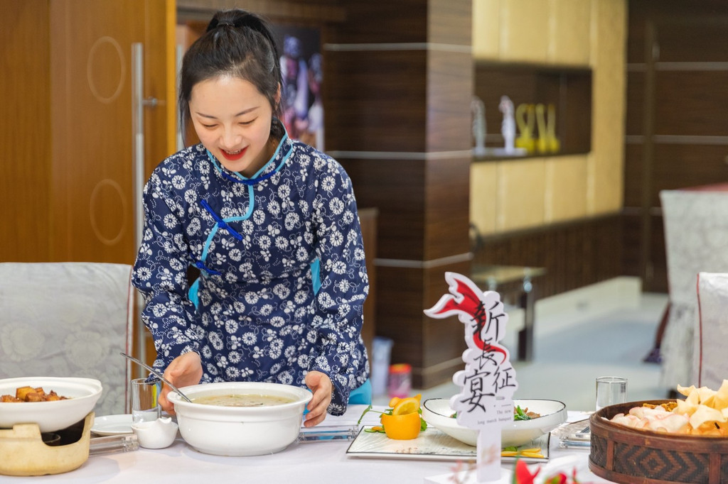 在分别的时刻, 于都 人民手捧着什锦盒头,端着南瓜汤送红军走上浮桥,这些当年的食品,成了 于都人回忆起来都觉得温暖的美食,也就有了现在的新长征宴。