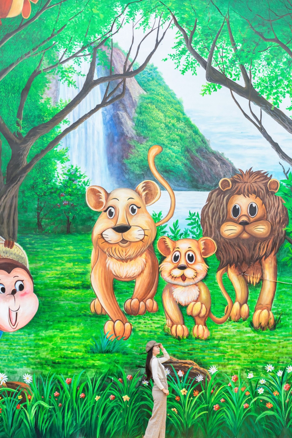 走进红峰村,整个村子都很干净,整洁,房屋的墙面上绘满了五彩的彩绘,有乡村田园风光,也有各种的动物,相当可爱。