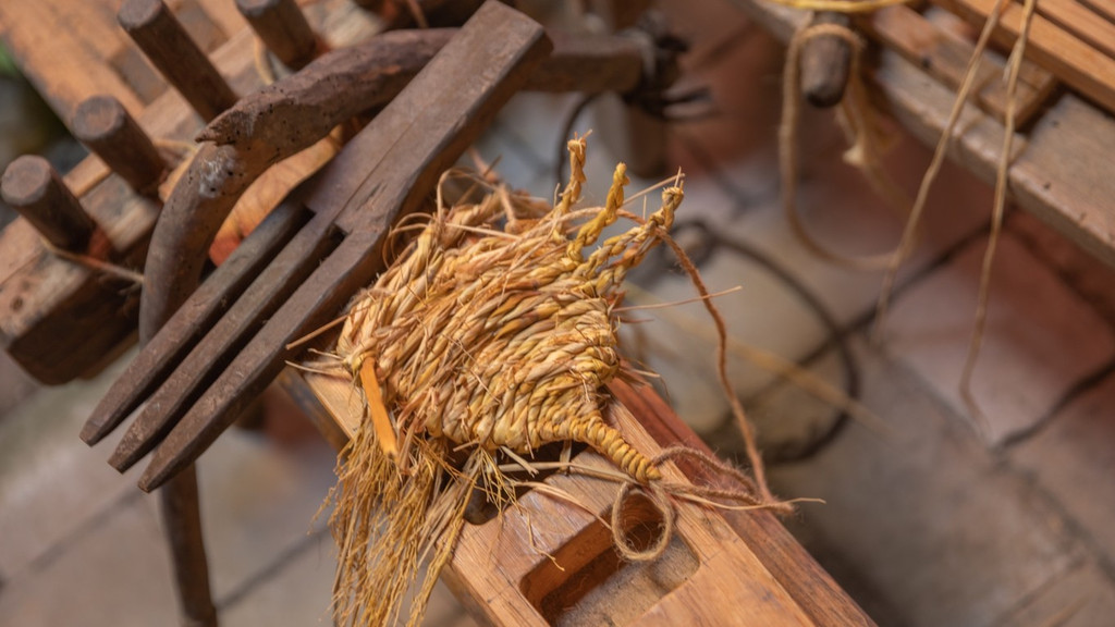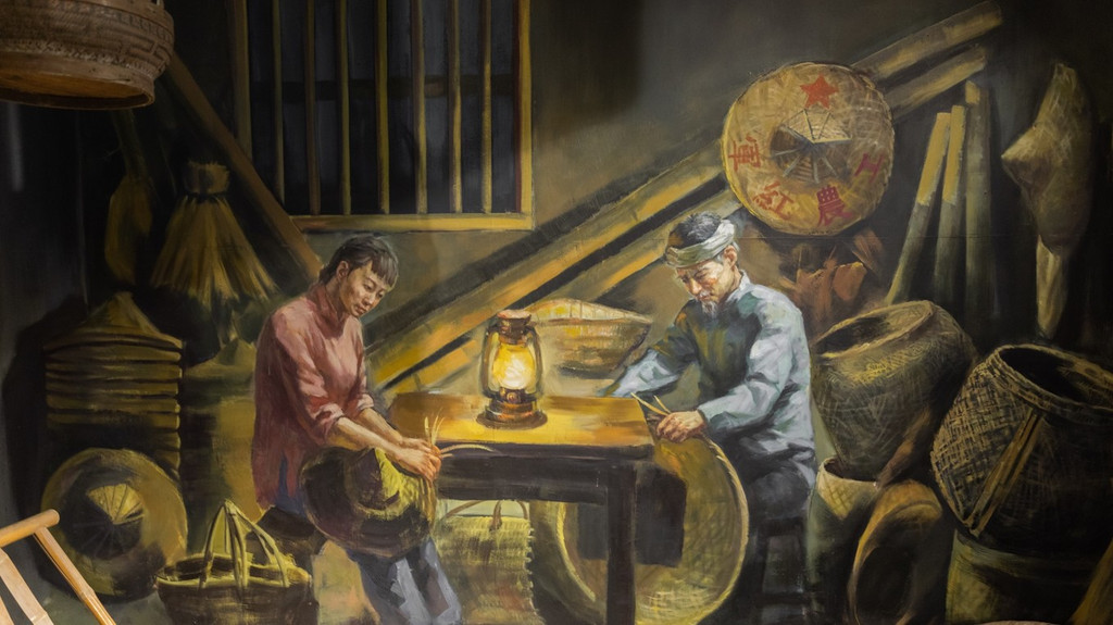 当然,如果想要感受一下编草鞋的艰辛,也可以跟着工作人员学。眼看她手脚敏捷,很快一只草鞋已成型,怪不得当年群众能在短短的时间内赶制这么多草鞋。