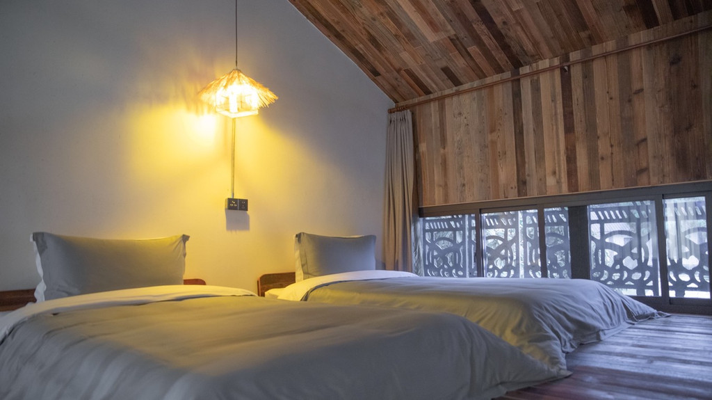 这里的民宿有很多单独的小庭院,复式的设计,二楼和一楼都有客房,可以供家庭和亲子客人居住。客房的布置也很温馨,这里没有嘈杂,只有宁静致远。