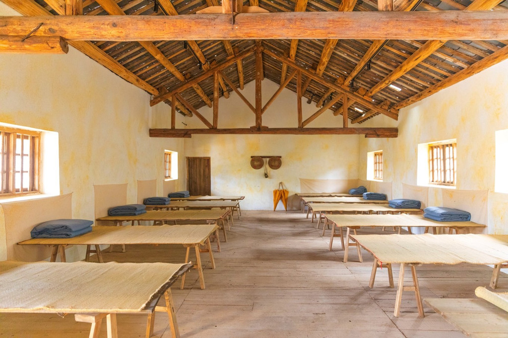 医院的二楼还有一大间集体卧室,全是木板加草席的配置,但红军战士就是在这样简陋的环境下,艰苦奋斗,开创了崭新的局面。