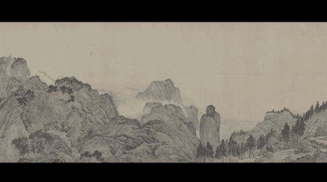 画卷徐徐铺开,被墨色晕染的奇景渐次展现,移步换景、各具其姿。山间林木乃至溪边乱石均刻画细致,山岩的轮廓线方折挺劲。繁密细劲的用笔与丰富的用色使画面富有层次感,极好地表现出雁荡山奇秀的特点。叶澄传世作品极少,《雁荡山图》卷的艺术水平之高堪称杰作。
