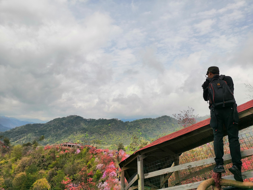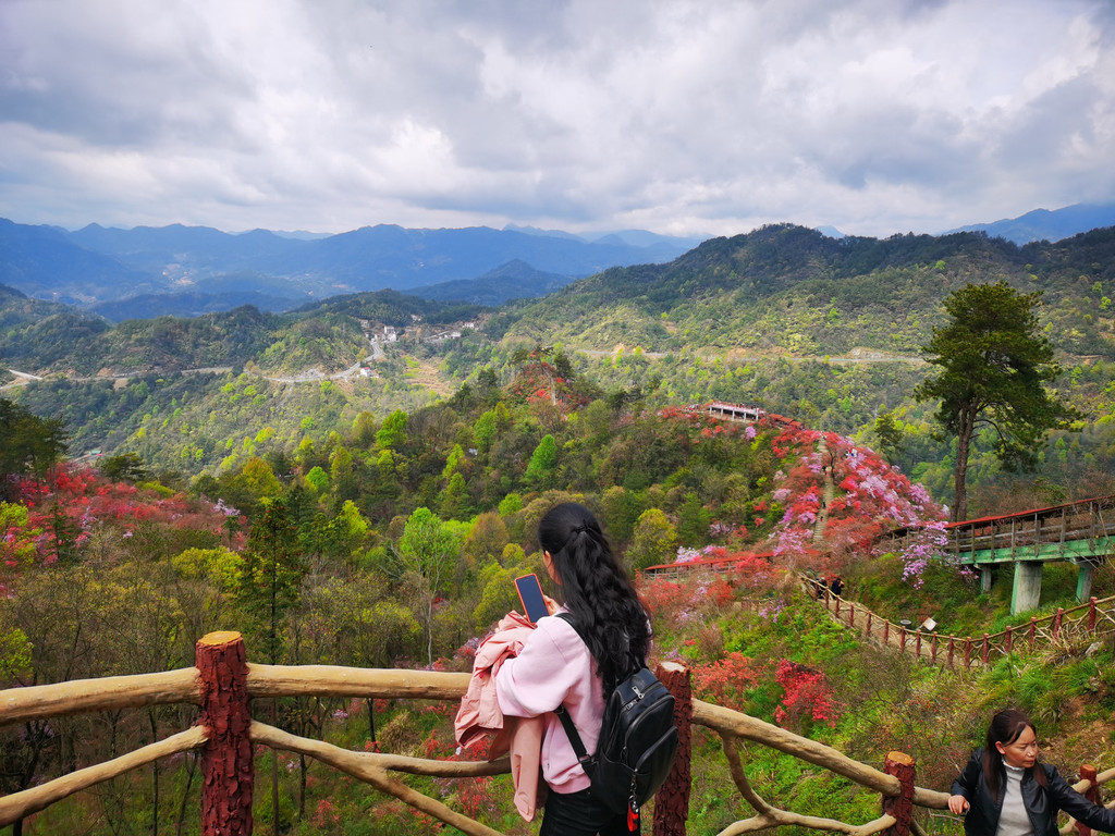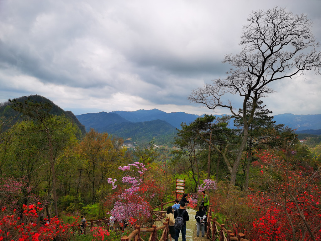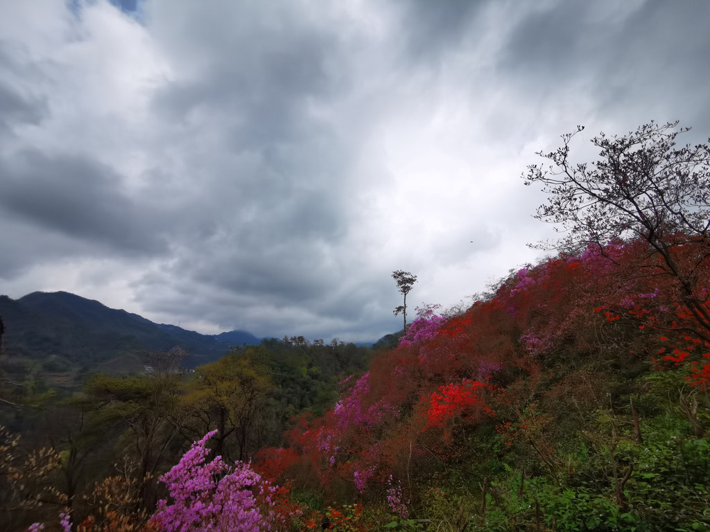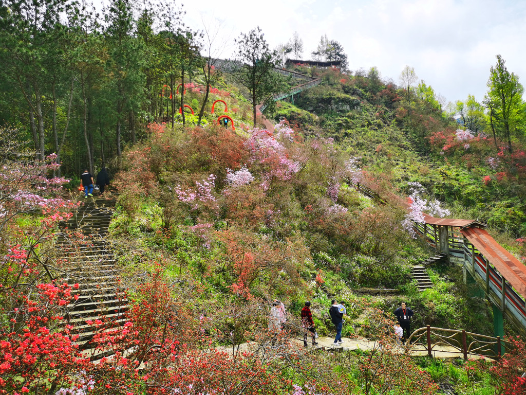 盛放的杜鹃花犹如为大山披上了盛装,又好似为山林涂了胭脂,远远望去,绚烂如云如梦如幻,如诗如画。