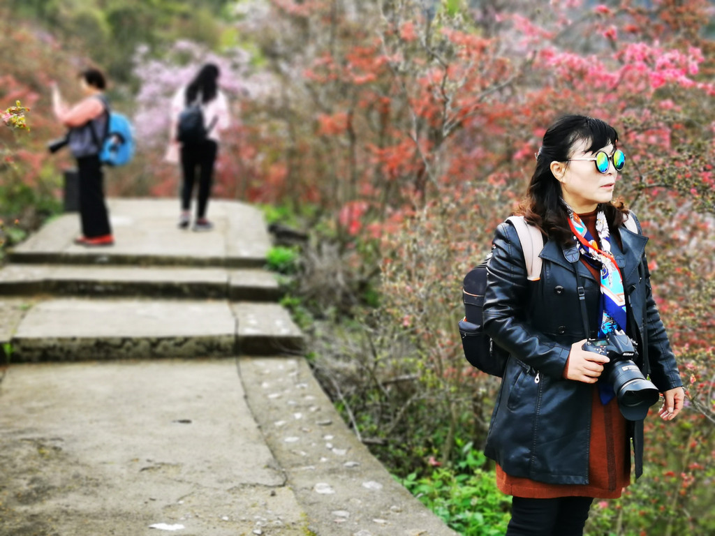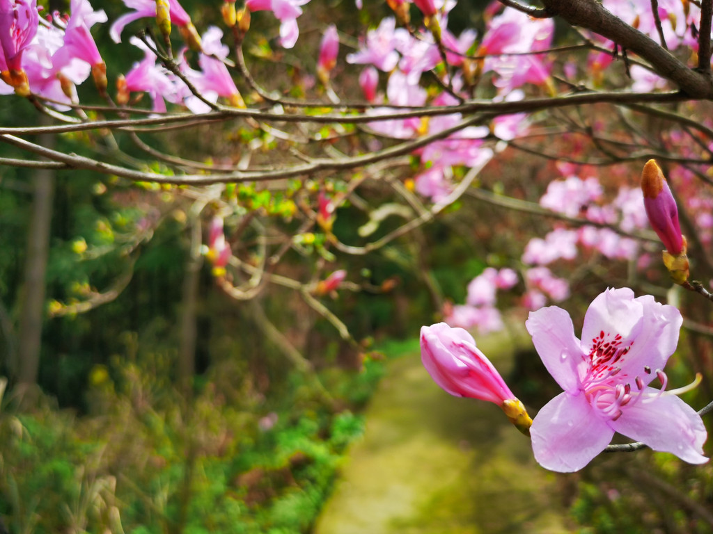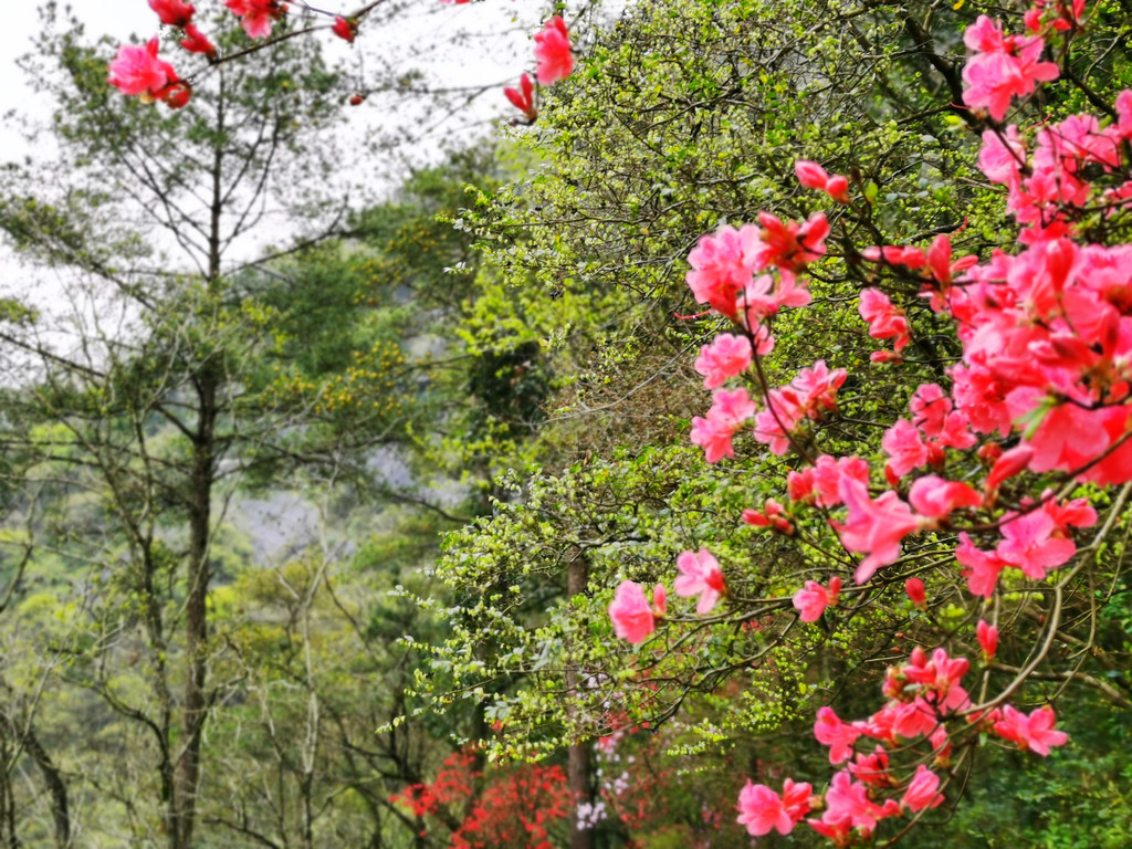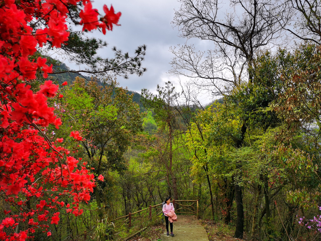 路边零星杜鹃花开,吸引你继续向前;