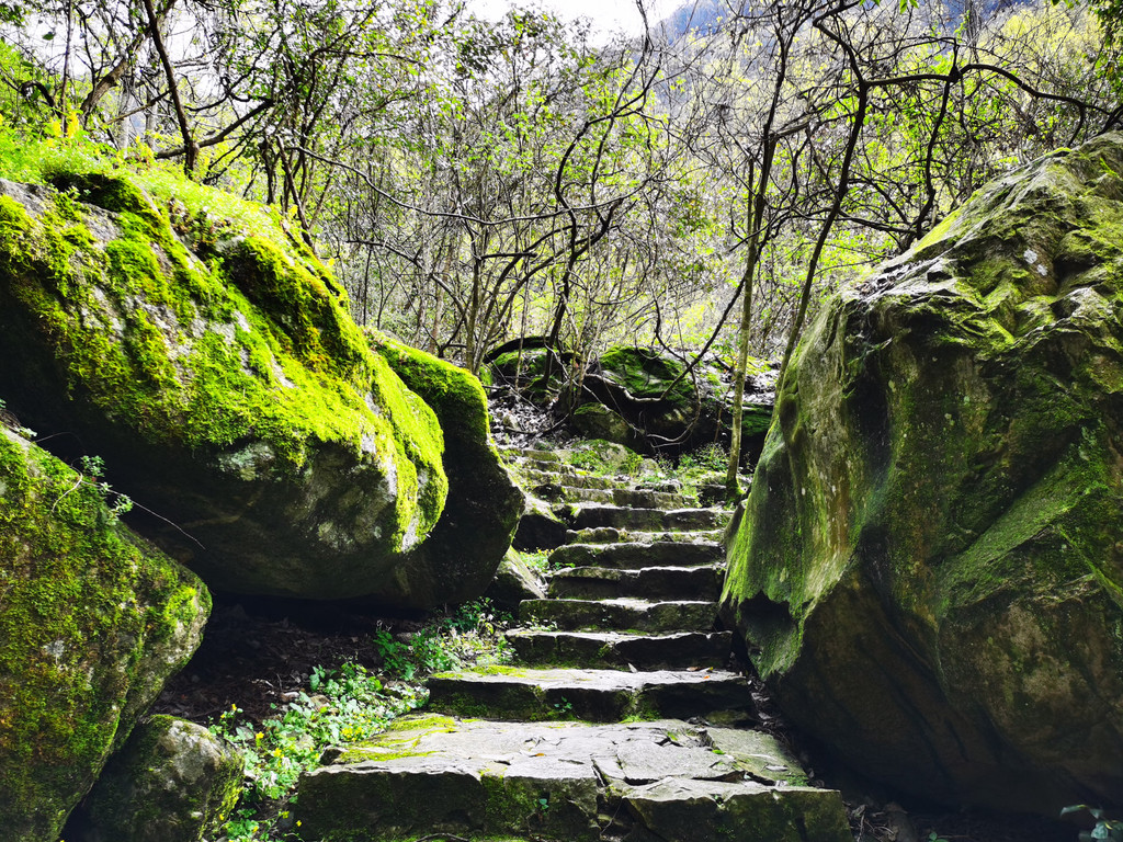 暖暖的春意,翠绿的树叶,静静地山谷,唯有脚步与呼吸声。