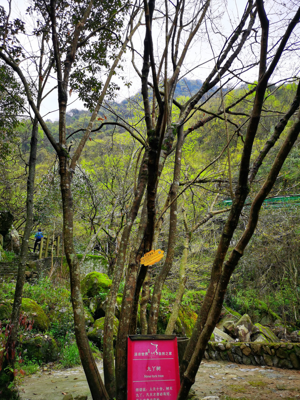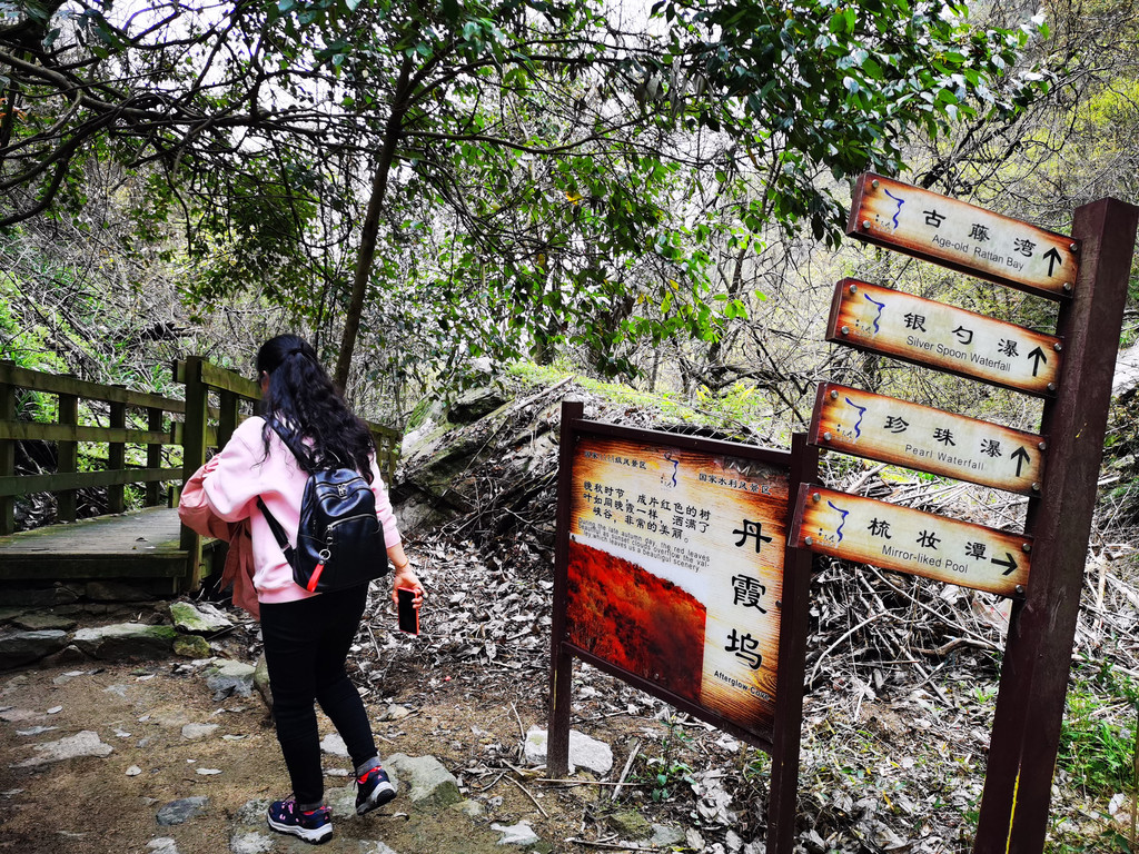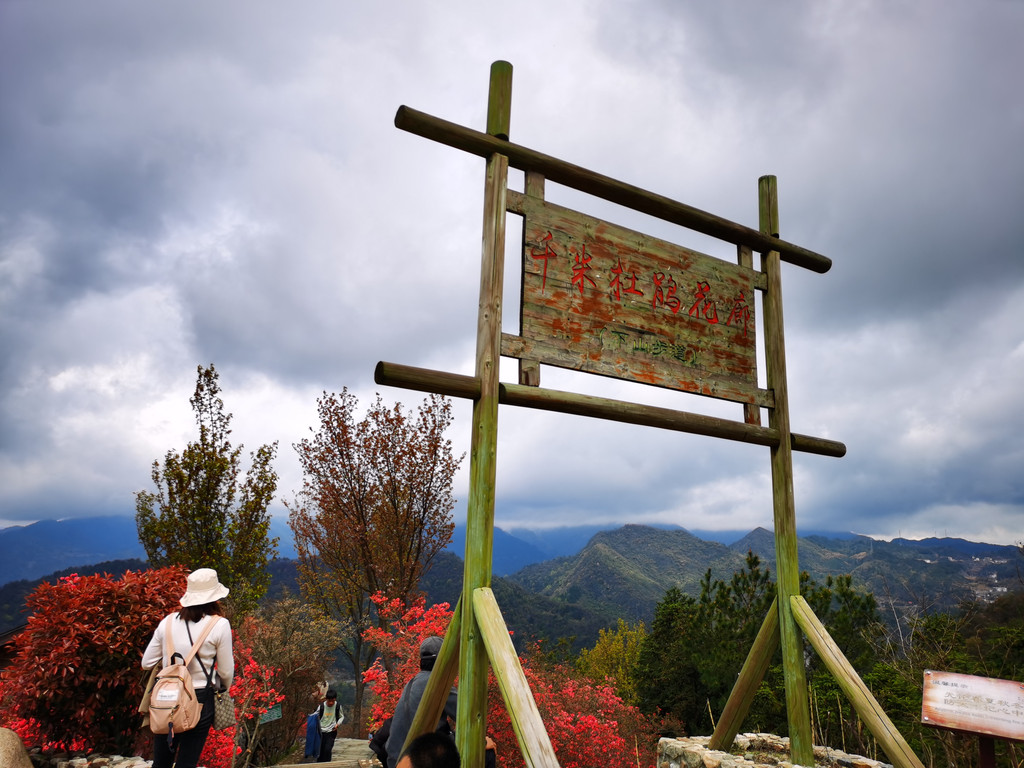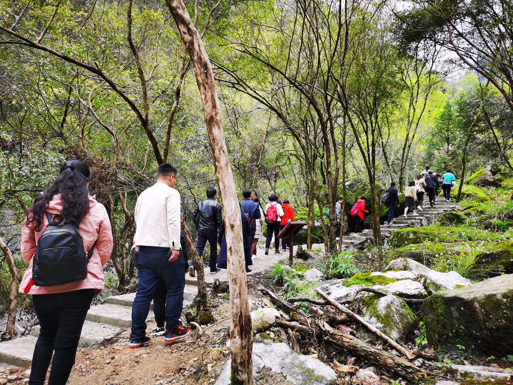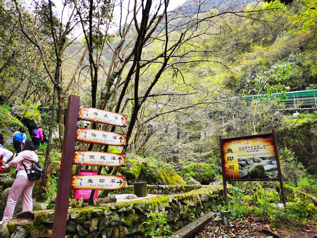 从这个指示牌可以看出,我们是逆方向游览的;如果按指示牌走,那就是先游览瀑布群,然后观看杜鹃花海;