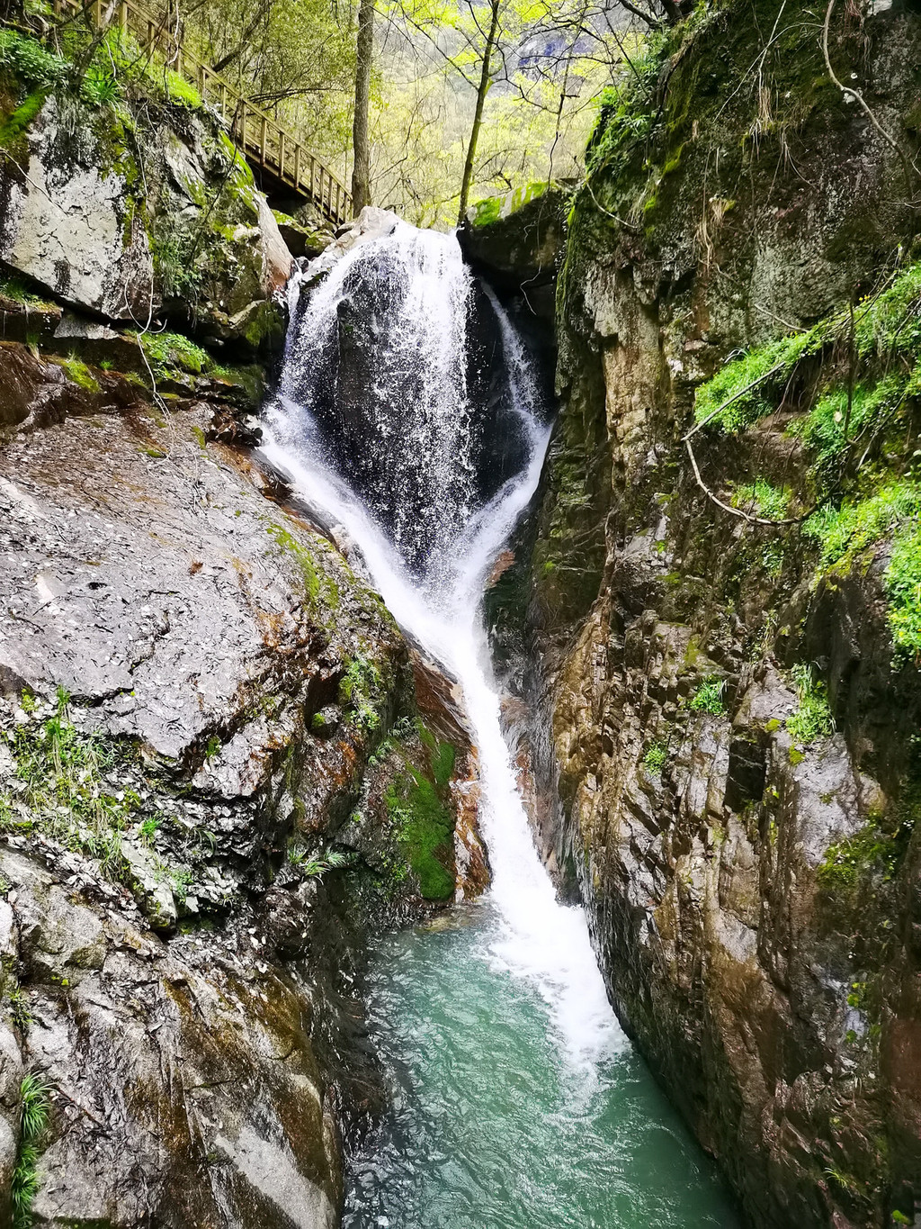 幽静的峡谷显得安逸秀美,瀑布群活力十足,忍不住频频回头。