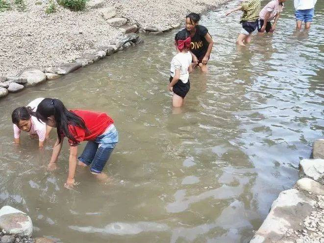 和孩子们一起在水中嬉戏