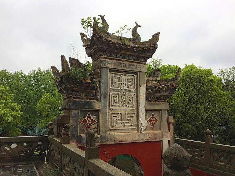 岳阳楼往北,看见一座小乔墓,又名二乔墓,传为三国周瑜军府花园。墓园内照壁,正面刻有苏东坡手迹“遥想公谨当年,小乔初嫁了,雄姿英发”。