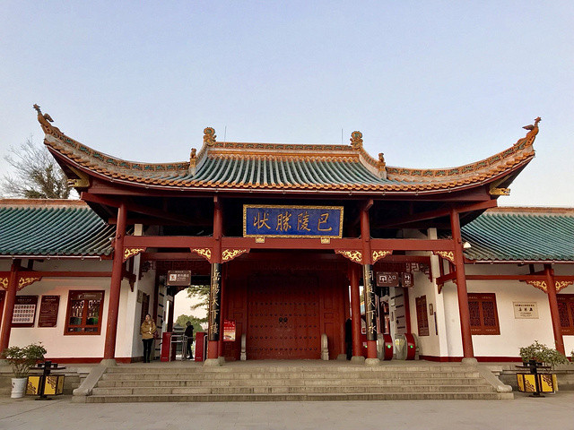 岳阳楼景区南大门是一座砖木单层传统特色的屋宇,建筑造型及门窗、梁柱的装饰颇有洞庭渔米之乡和湖湘文化的神韵。正门上方所悬匾额“巴陵胜状”四个金色大字,很有气势。