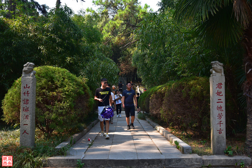 在二妃墓前两侧的石柱上,刻有一副对联:君妃二魄芳千古,山竹诸斑泪一人。后人将将上下联各第一个字君和山连在一起读,这个湖中的小岛就被叫做了君山岛。