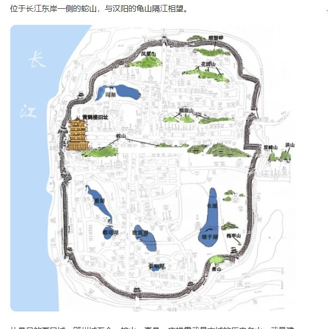 有一张百度网页的武昌蛇山景区图,有点精准地勾勒了蛇山概貌。