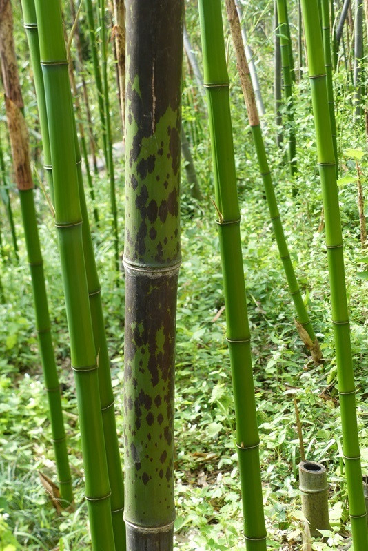 二妃在君山听到舜帝逝于苍梧,抚竹痛哭,泪洒竹上,竹竿生斑,成为斑竹。