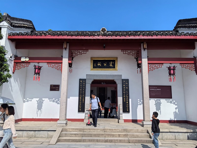 江南第一祠—湘妃祠。湘妃祠古名湘山祠、湘妃庙,始建于战国晚期,是祭祀君山、湘水神的祠庙。祠庙的神主传为二妃,后因屈原作品的巨大影响,二妃便与湘君、湘夫人融合,唐代以后改称湘妃祠。现在的湘妃祠是1980年依据清嘉庆《巴陵县志.图舆》重建。