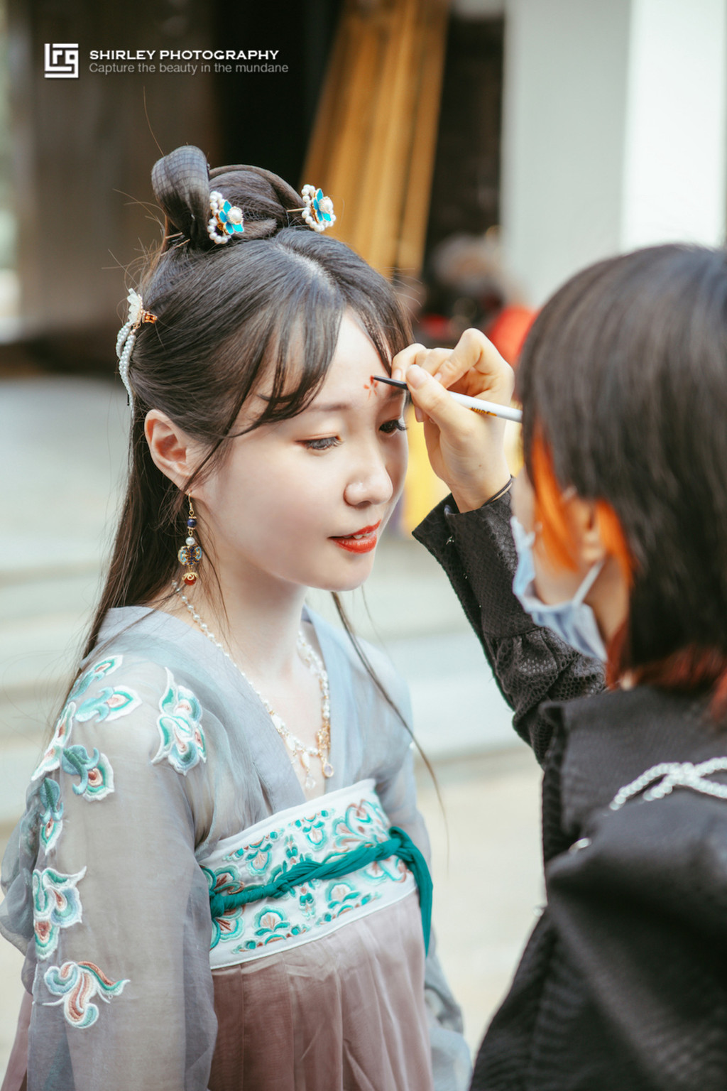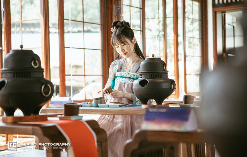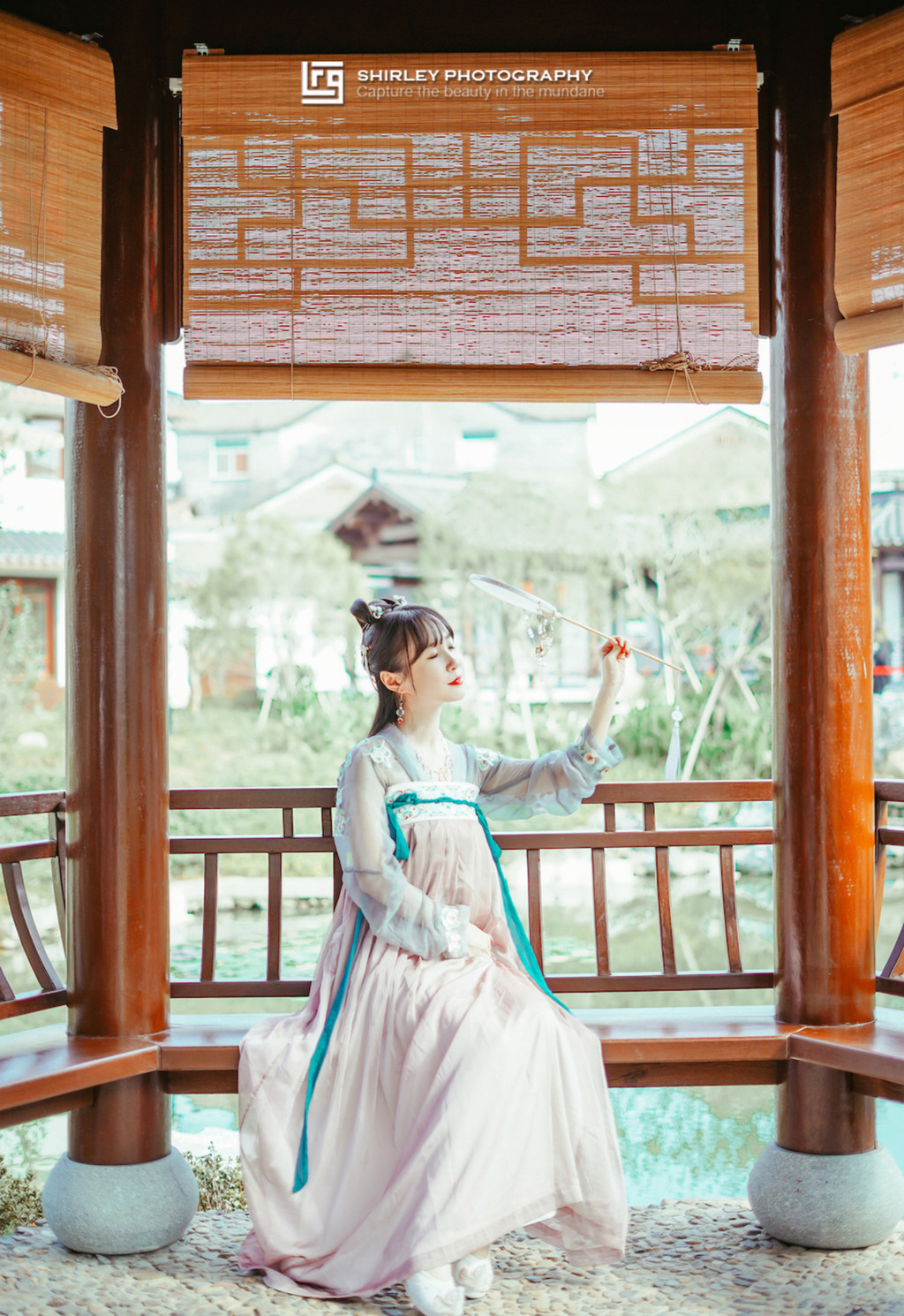 在唐代茶圣陆羽为主题的景区里,自然没有比唐制的齐胸衫裙更合适的了。连带唐风发型也包含进去了,绝对是手残党的福音,再也不用早起倒腾自己的发型了。