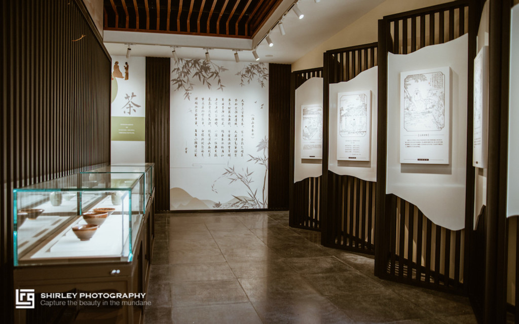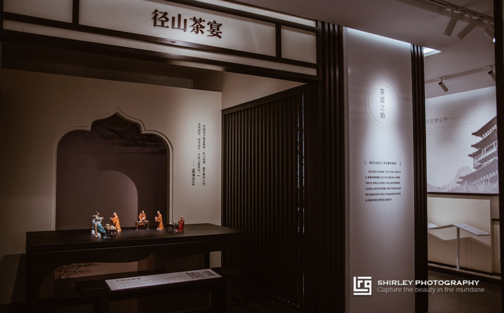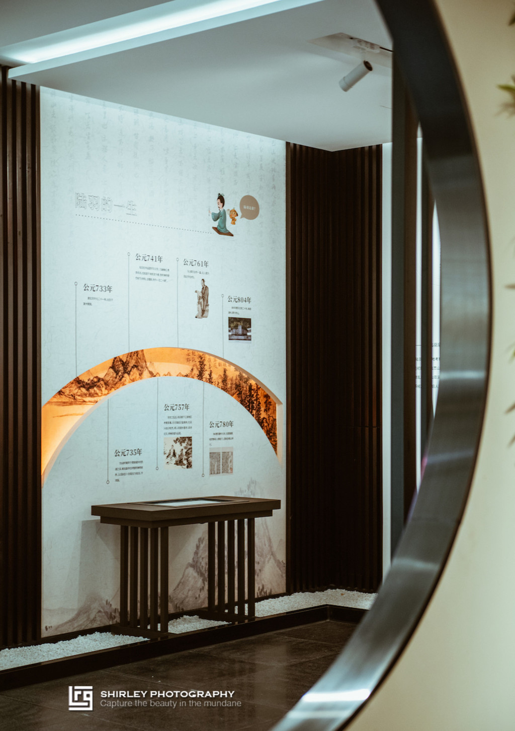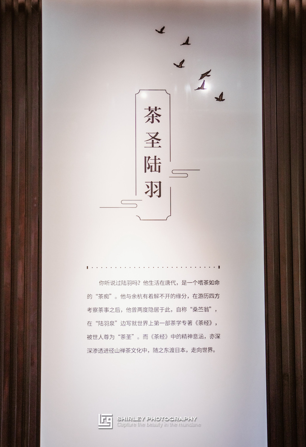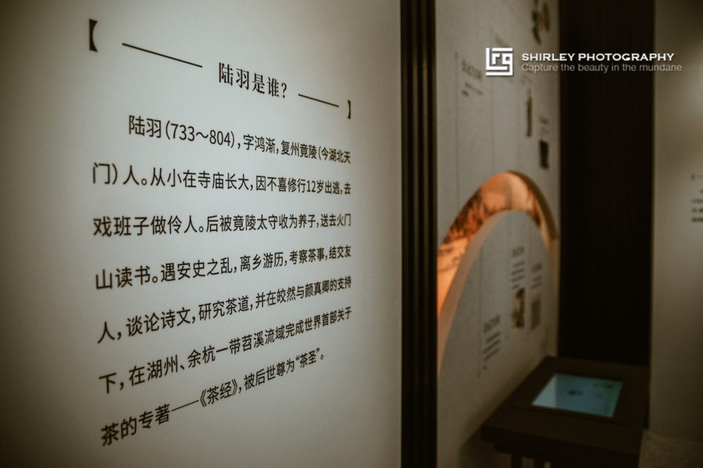 不大的博物馆展厅内,从“陆羽是谁”开始,到有关陆羽生平的书画,前后使用了多种展陈手法、深入浅出地向游客展示了茶圣陆羽的传奇一生。特别喜欢展厅的新中式装修风格,典雅大气中带着质感与时尚,第一眼便与陈旧的老博物馆们区分开来。