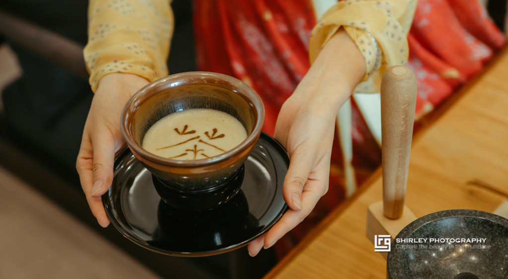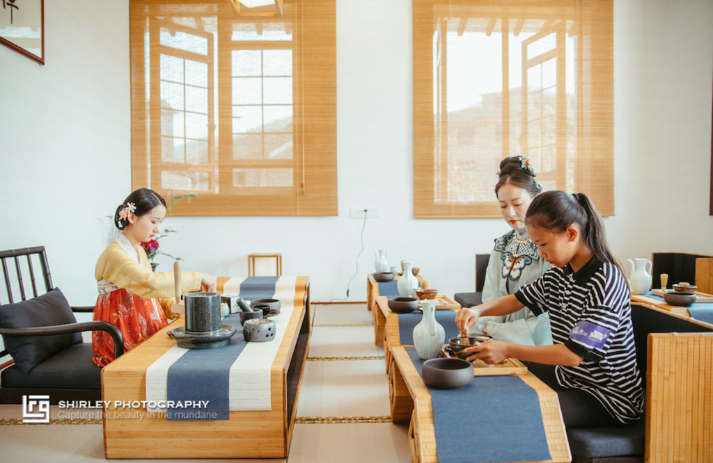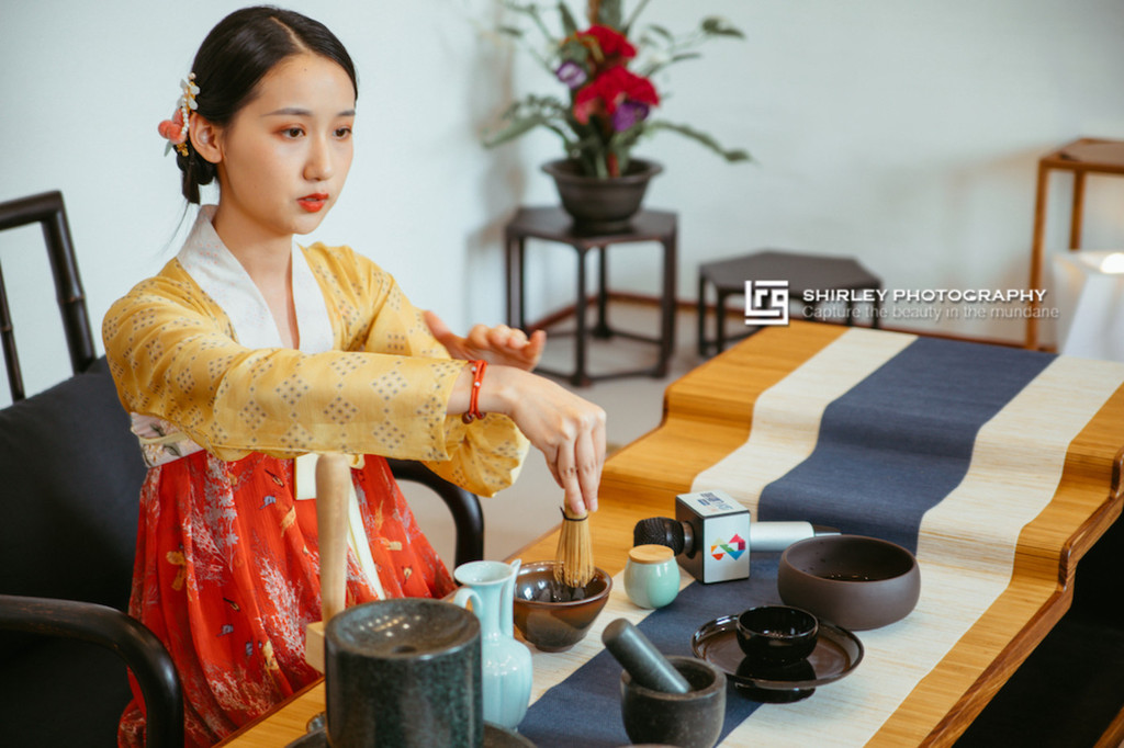 在鸿渐楼的二楼,有一间布置得十分雅致的茶室,在这里,可以跟着老师一起学习《知否》同款的宋代点茶——七汤点茶法。