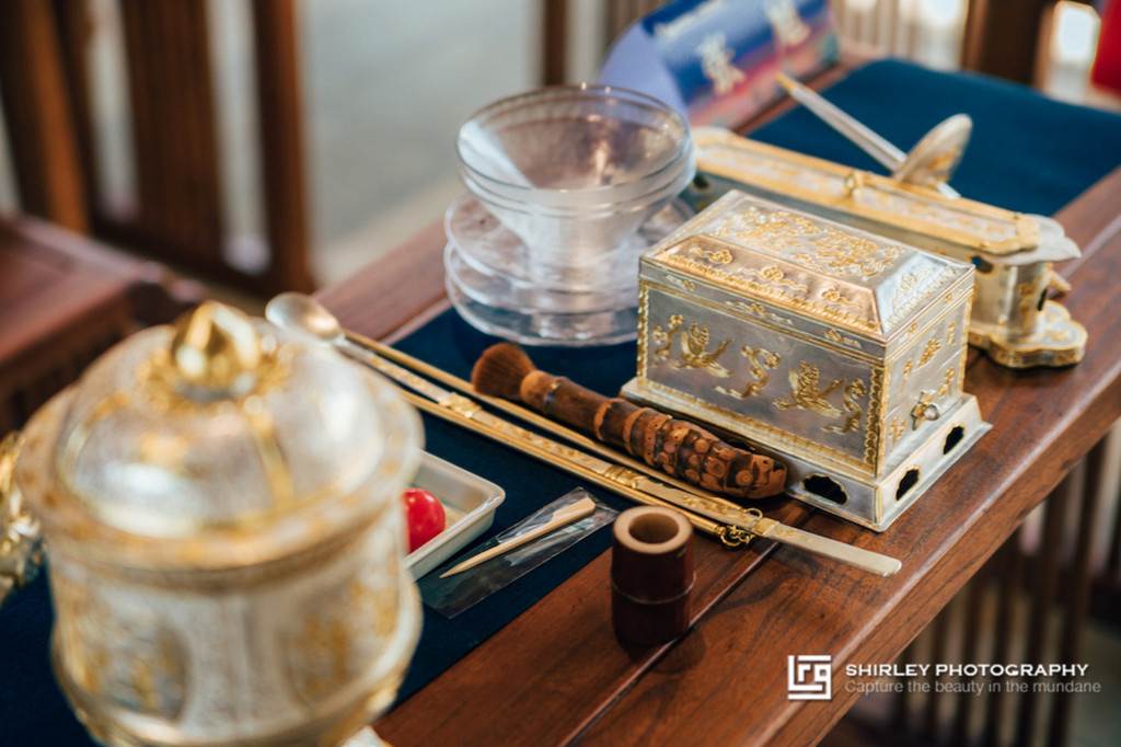 老师用的煮茶茶器也非常特别,是不久前根据法门寺地宫出土茶具刚复原的“二十四器“。无论是风炉,罗盒、还是茶碾,鎏金飞鸿纹银器都极尽华丽,高调诉说着过去来自宫廷的身份。
