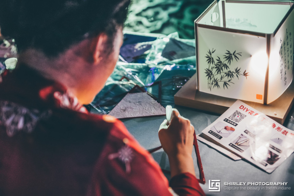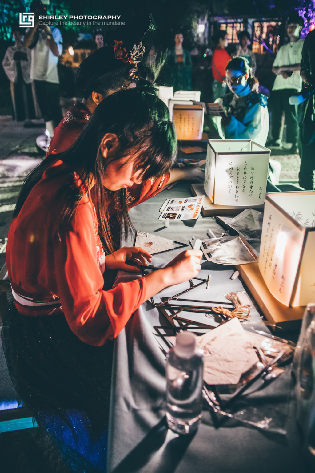夜晚的花灯制作,尽显古人中秋意趣,貌似是中秋古风游园会的压轴项目了。通过自己的摸索、研究,将一堆零散的原材料,DIY成一个个精致华丽、造型各异的花灯;比起看中秋晚会,这样的中秋之夜才更有成就感吧!