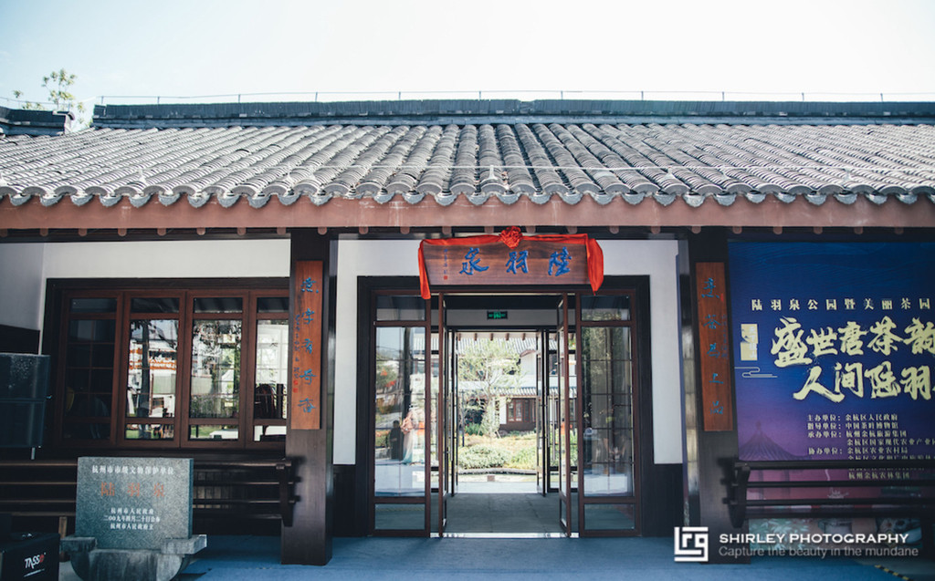 陆羽泉一旁,是陆羽曾经撰写《茶经》的旧址——苕溪草堂。屋内陈列着桌椅、卧床、灶具等,向我们还原了茶圣陆羽简朴的生活场景。