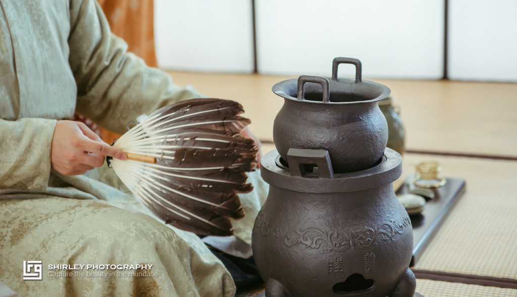 唐人是用釜来煮茶的,先在釜中装适量的水,水煮到初沸的时候,加点盐;到二沸的时候,舀出一瓢水放置在旁边,把茶末投入到水中继续煮;三沸的时候,再把舀出来的水倒回去,叫做“止沸育华”,这时茶就煮好了。因此对于唐人饮茶,“煮”便是其中精髓。