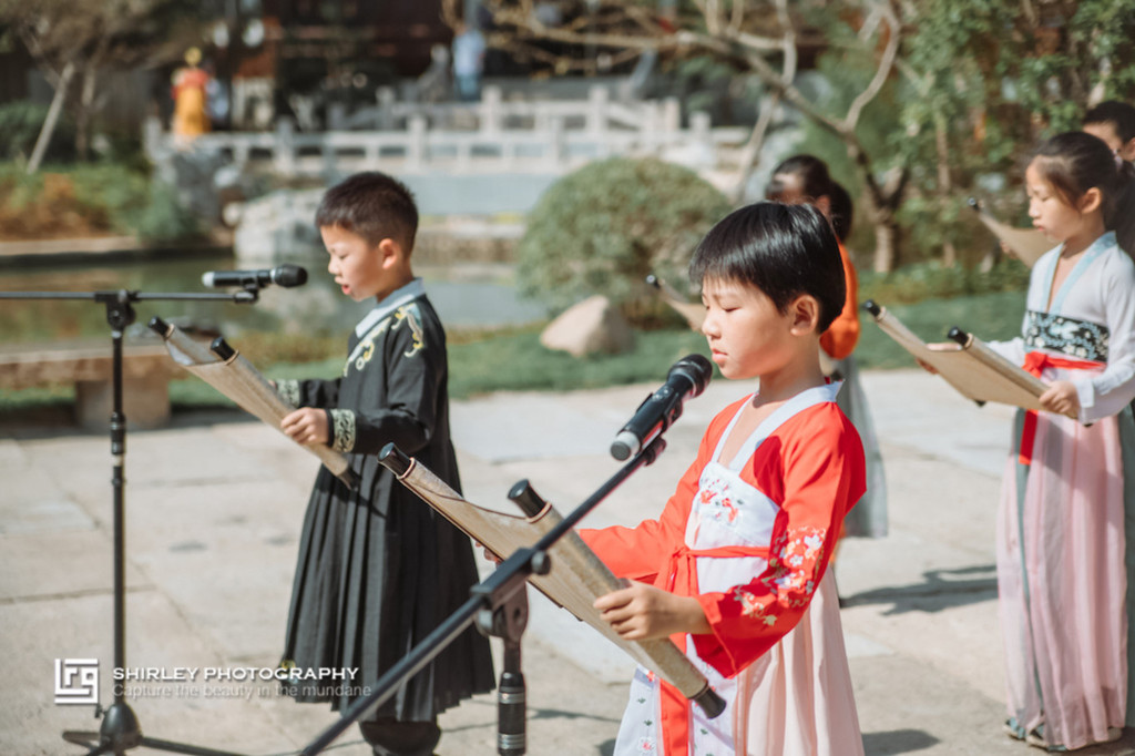 茶圣陆羽铜像广场前,是一群身着汉服的小朋友正在举行茶圣谒拜仪式。看着一脸认真、有模有样的小朋友手执卷轴,齐声诵读《咏茶三字经》;我们感慨传承了千年的茶文化,也一定能在新生代身上继续得到发扬光大吧。