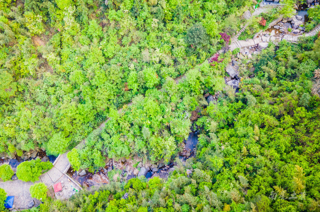 沿着罗窑溪拾级而上,山涧溪流潺潺,空谷传声,闻着山谷清新的青草味,开始倍感轻松。据说沿途还有火烧平天堂等历史遗迹、阿牧童和石箱子等传说故事。