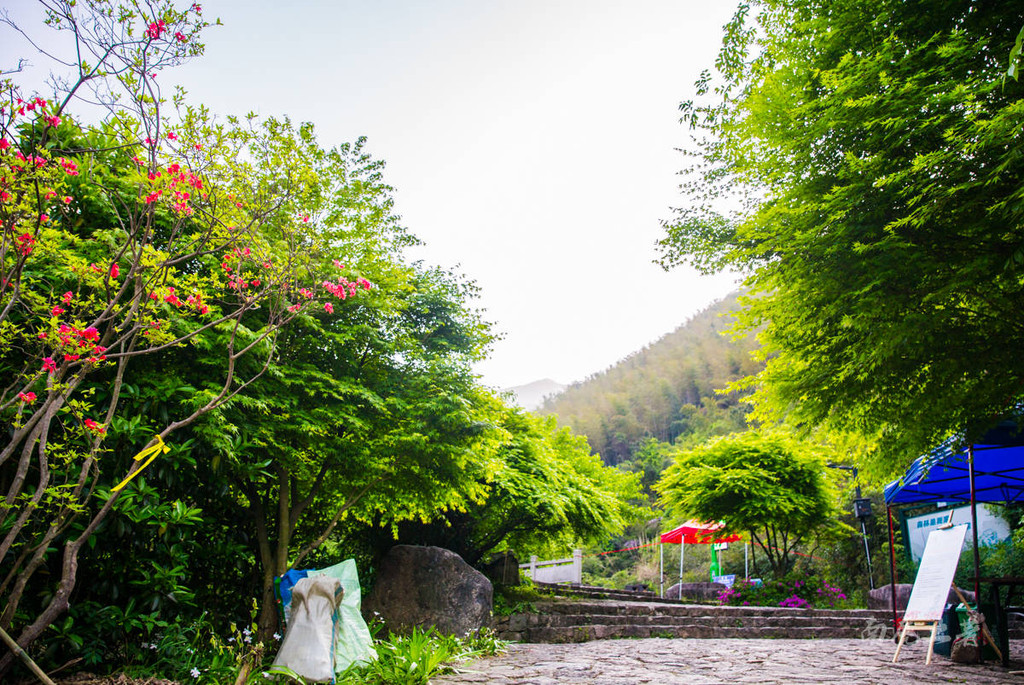 余杭百丈百年杜鹃林有三个入口,按导航到百丈镇最方便的路程泗溪村,村里的人说今年山上修公路,去年开到半山的中巴停了,建议我到溪口村罗窑坞入口,上山路程最短,单程大约2小时到达海拔800多米的平天堂山顶。村子的入口整洁干净,有停车场,今天人不算多,入口有指路牌子,不收停车费和门票。