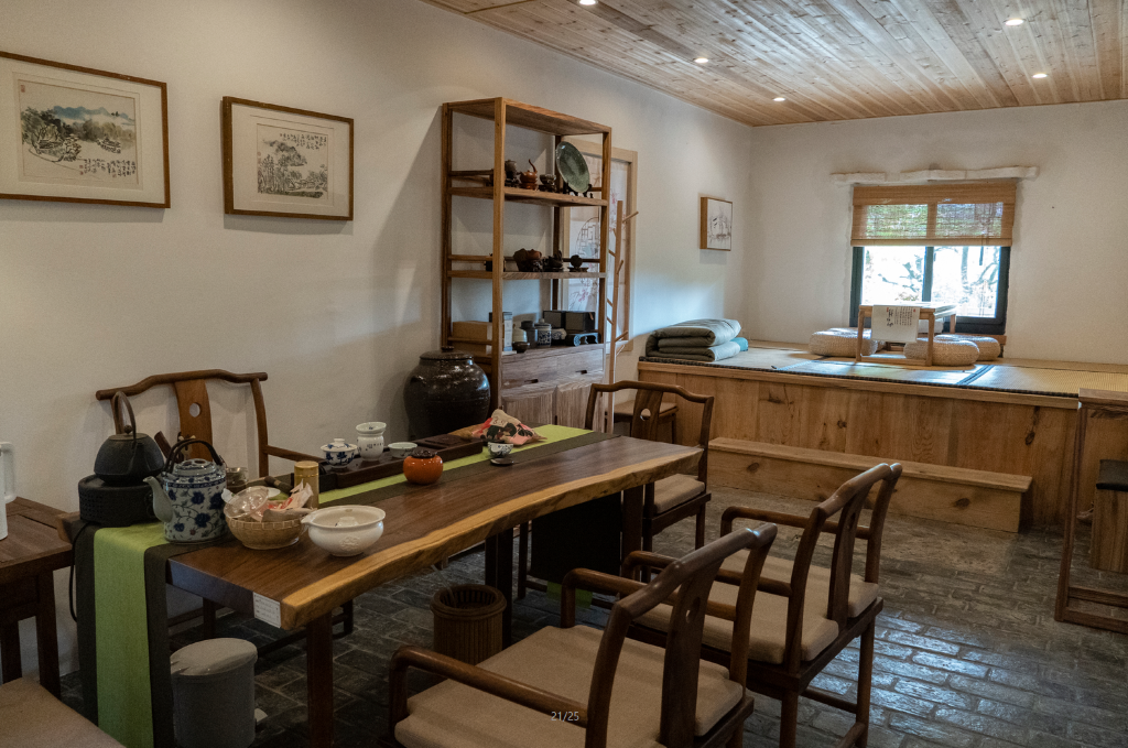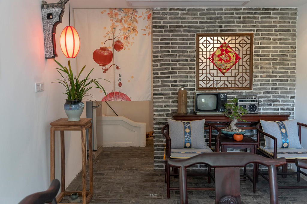 客房有很多种类,其中有一间为套房自带庭院,中式风格。