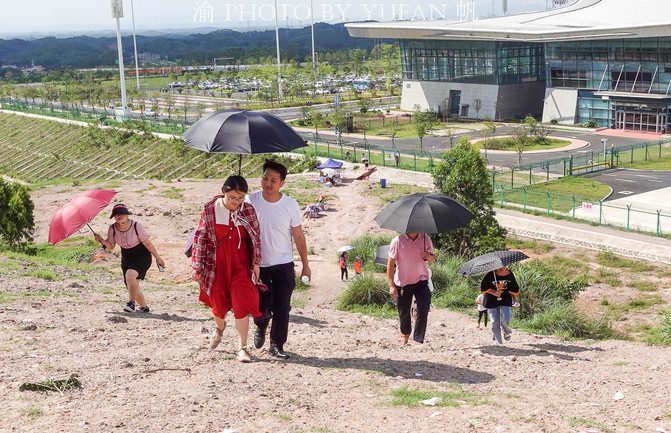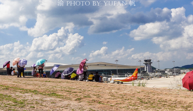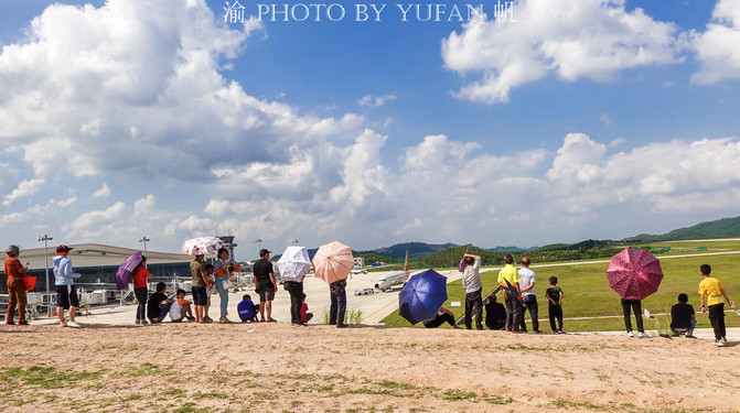 渝帆特地注意看了看天气预报,气温高达36摄氏度,前一天刚下过雨,太阳真的很烈,晒在身上都很痛,但是这都无法影响人们来观看飞机的热情。