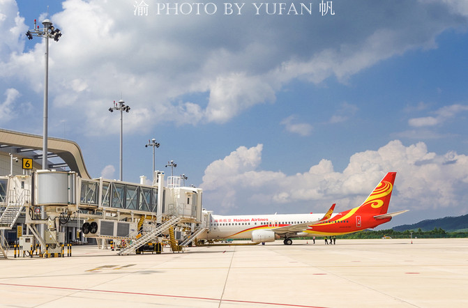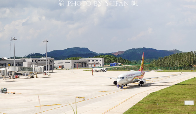我们到达机场侧面的时候,看到正有一架海南航空的飞机停靠在机场,据说还要一个小时才会起飞。