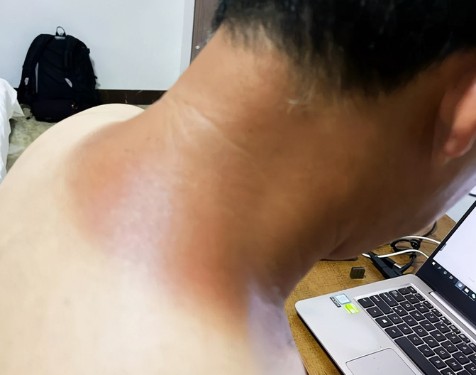 如果在家还不理解当天的太阳有多晒的话,我发一张我自己当天看了飞机回来拍的照片,由于没有做好保护工作,脖子上都晒成这样了,被朋友戏称一天晒成非洲人,所以渝帆靠诫大家,如果要去看飞机,一定要做好妨晒工作。
