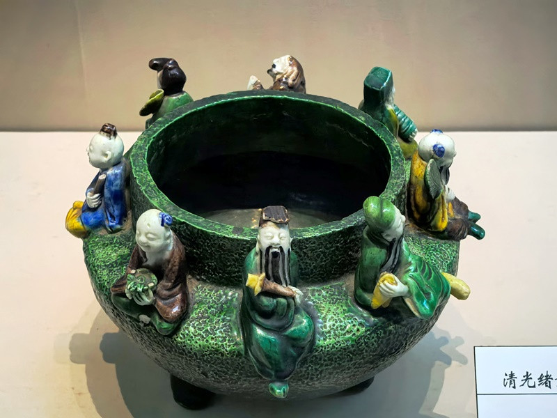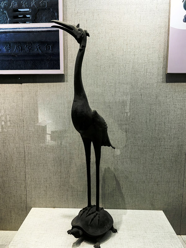 清代的文物,青铜壶,“金玉满堂”木雕,踏龟铜鹤。