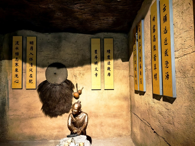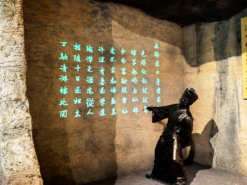 容县博物馆中“七十二房井”场景,再现苏轼游都峤山题诗赠友的历史画面。