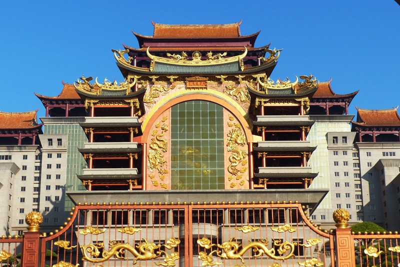 云天文化城是一座以浓缩中国古今传统文化和著名特色建筑风格融为一体,用以展现中国几千年历史文化的巨型仿古宫殿式建筑,堪称中国文化建筑一绝;同时又是一座大型综合各种艺术门类、高品位的文化艺术展示馆。云天宫虽然建筑辉煌超群,展品珍奇异宝,虽说具有高品位,但总感觉有点土豪。