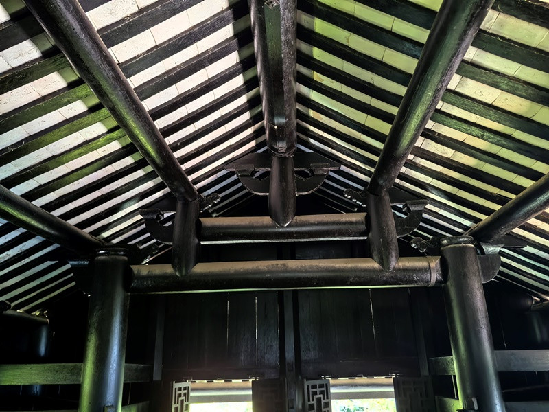 悬空内柱每根柱子都有大约一人怀抱之粗,数千斤之重。悬空内柱虽然看似不起支撑作用,但实际上起到了平衡作用,如同巨大的秤砣,拉扯着阁顶的结构,保持了整个建筑的稳定和平衡。