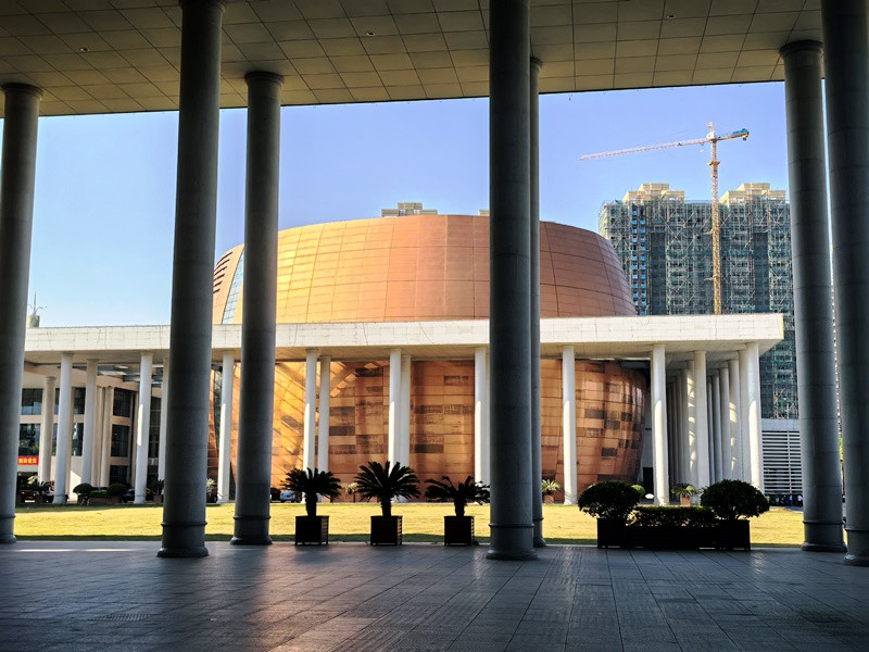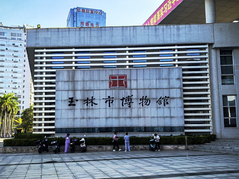 与玉林市博物馆相邻的铜鼓形式的建筑是一家影院。