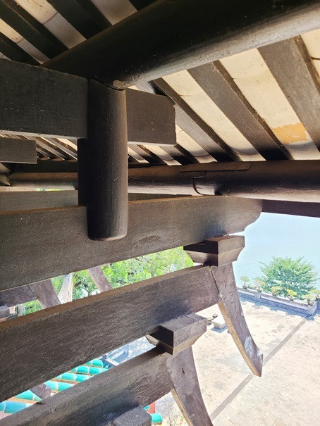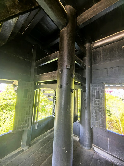 四根大悬空内柱是真武阁结构中最精巧、最奇特的部分。立柱的柱脚虽悬空离地2厘米,却仍能承受上层楼板、梁架、配柱和阁瓦、脊饰的沉重荷载。