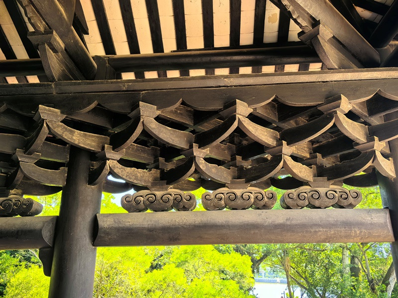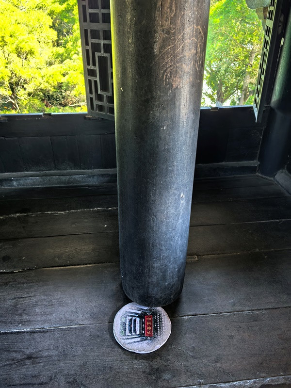 我猜想,在地震或台风时,杠杆式斗拱将产生晃动,四根悬空内柱距地面的距离会发生变化,只是没有相应的记载佐证我的猜想。