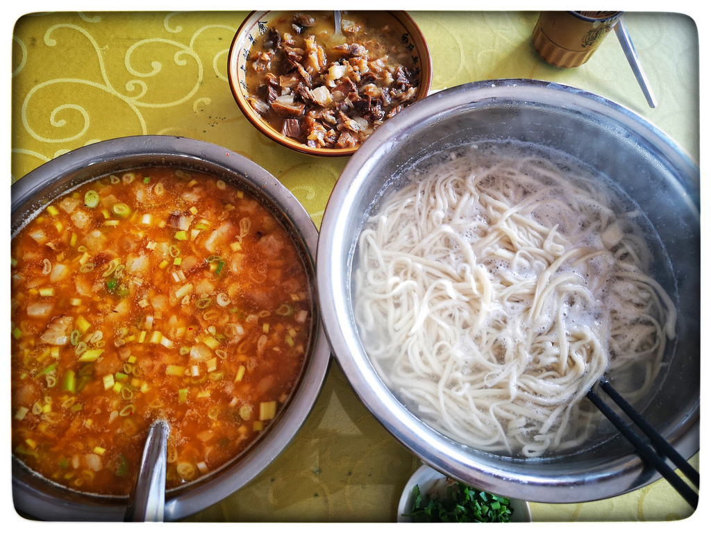 中午时分,我们才依依不舍地离开了这片奇妙的世界,到靖边县城吃了当地最有名的老婆婆剁荞面,然后赶往今天的第二个景点—统万城。