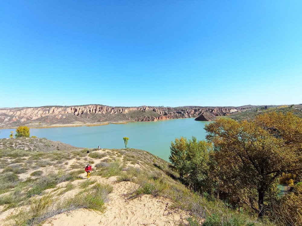 最后一天早上本来在等公交车打算去红石峡的,后来和小朋友查到网约车去麻黄梁也就几十块钱,就约了个司机。开车还是有些远的,不过一路上风景倒是不错,黄土高原的沟沟壑壑尽是显露眼前,看起来很是壮观。麻黄梁景区走到最高的观景台,北方难得的水域尽收眼底,有水的地方多少都是有些灵气,裸露的黄土间杂稀疏的植被也是被点缀成一幅江山如画。