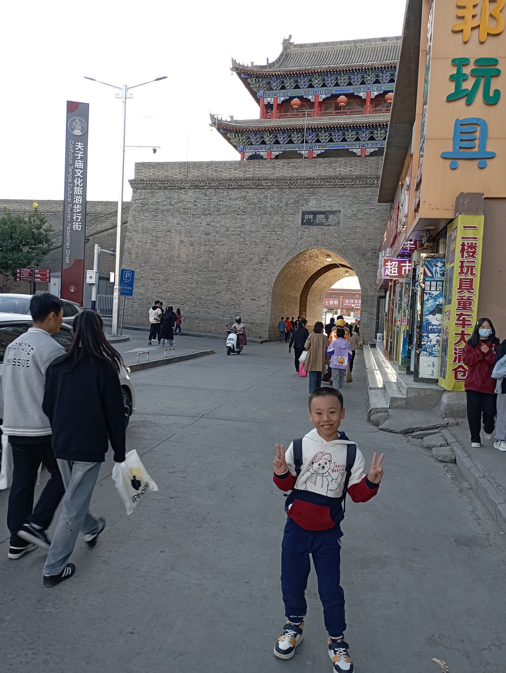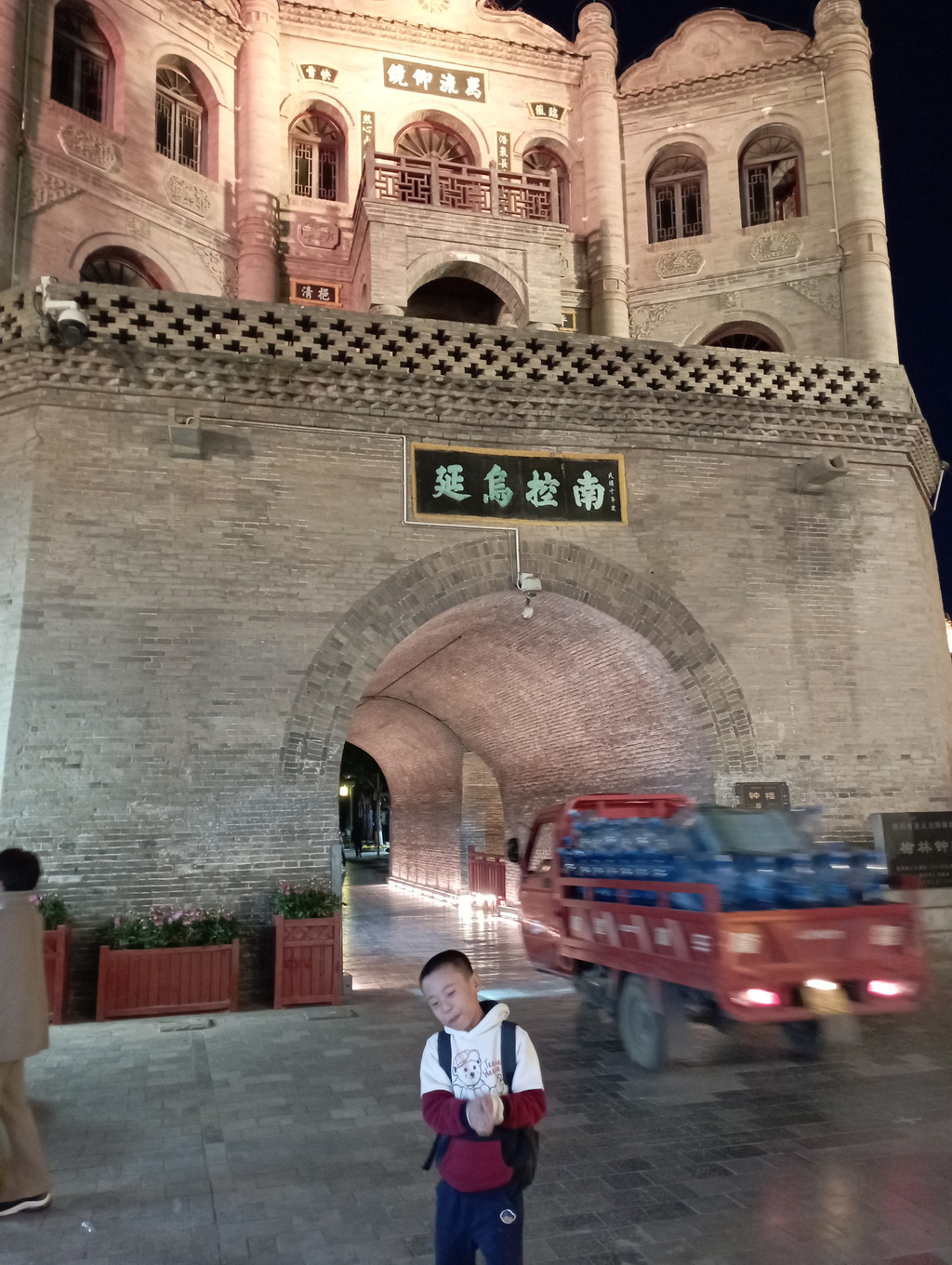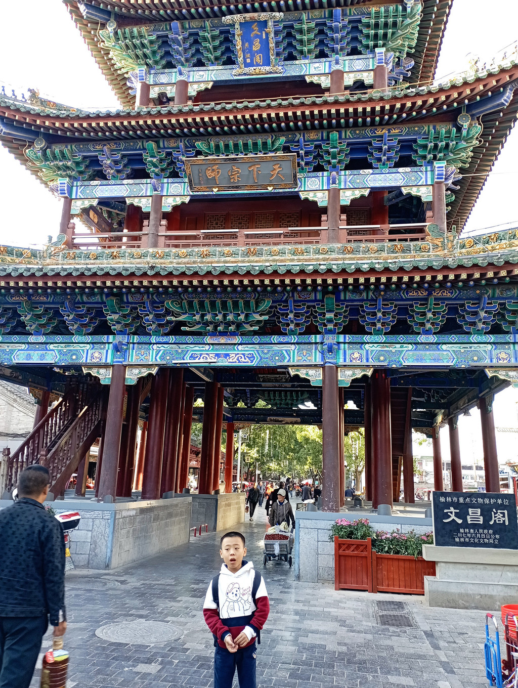 出来之后,小朋友说有些累了饿了,要吃东西。那就再坐车回市区,去榆林老城里面看看有无什么特色吃食。榆林老城里面文昌阁、钟楼、鼓楼都保留着,有些虽是重建,也是难得。白天老城主干道两边有不少地摊售卖各种东西,吃的,玩的,收藏的......晚上还有些街道曲艺表演,游街等活动,热闹的很。老城很有生活气息,不是很多地方那种纯粹为了游客而设的。榆林老城里面有各种生活设施,还有学校等。刚好是赶上周五放学的时候,接送的家长和学生让老城一时人声鼎沸。