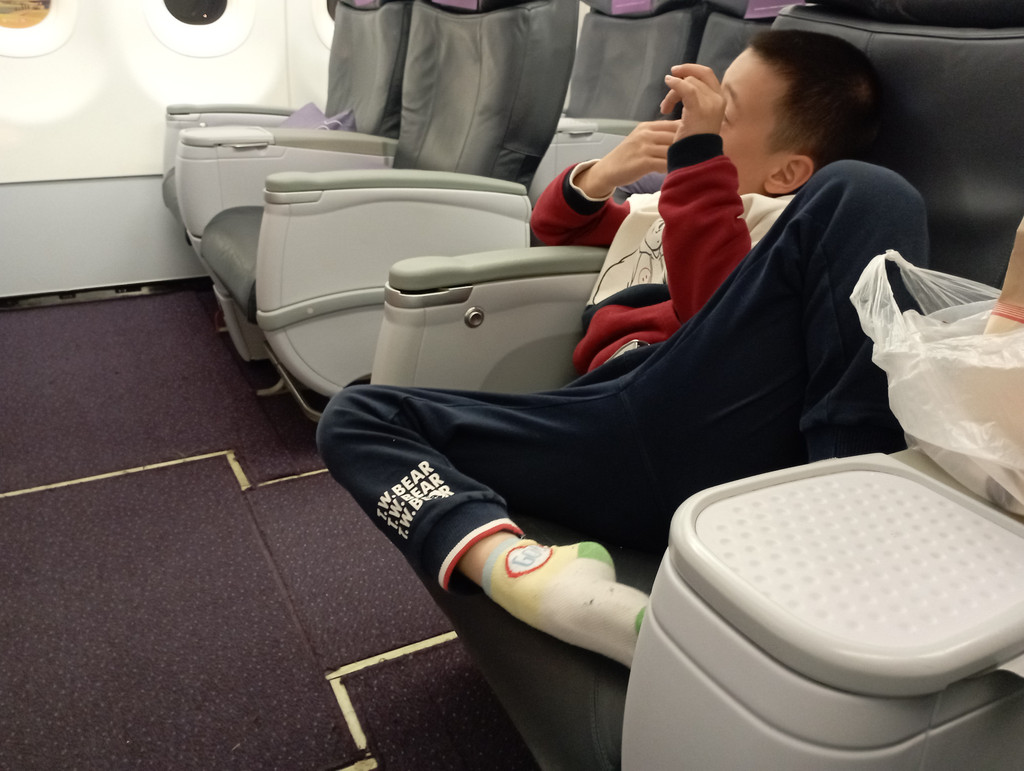 晚上机场值机的时候,工作人员问要不要升个舱体验下,一时冲动,一人399元就花出去了。上了飞机才发现,前排舱室就我俩,倒是体验了番包场了的感觉。不过全程飞行倒是挺舒服的,也算是享受了一把锦衣夜行。