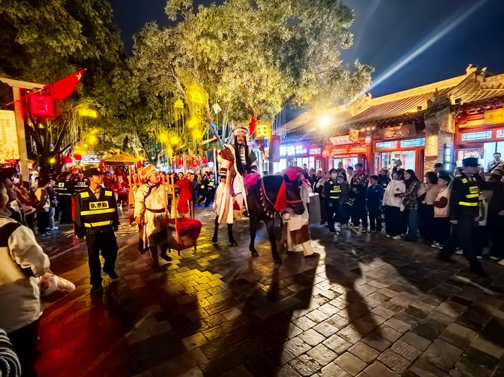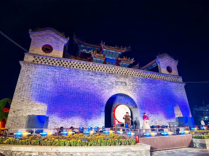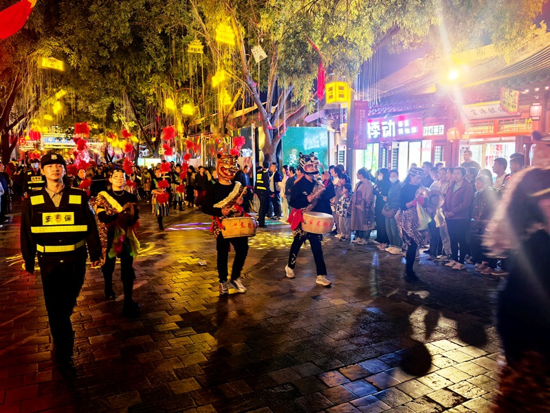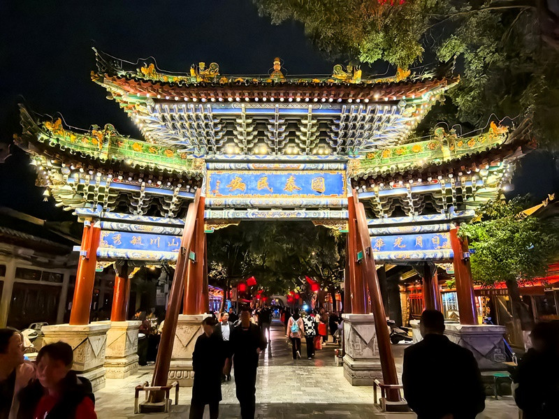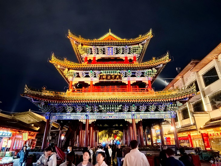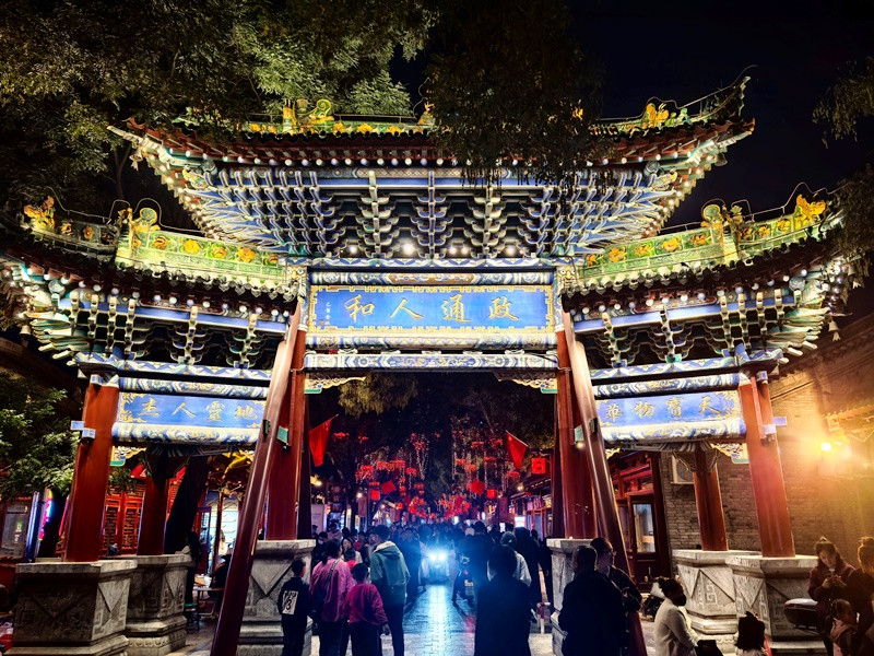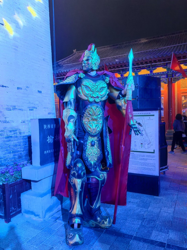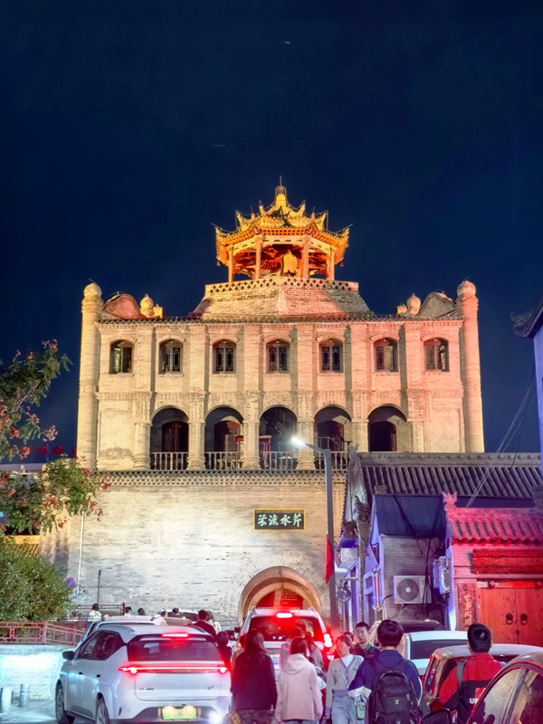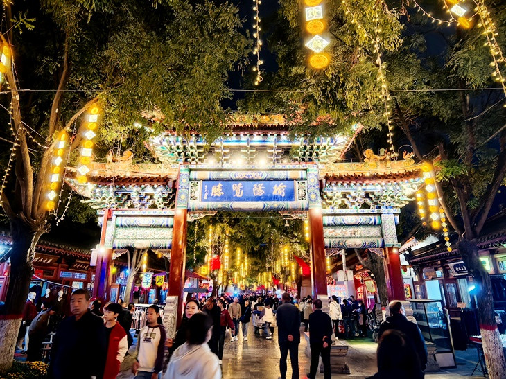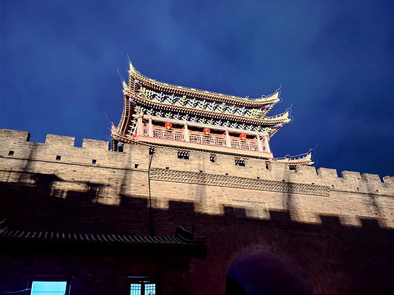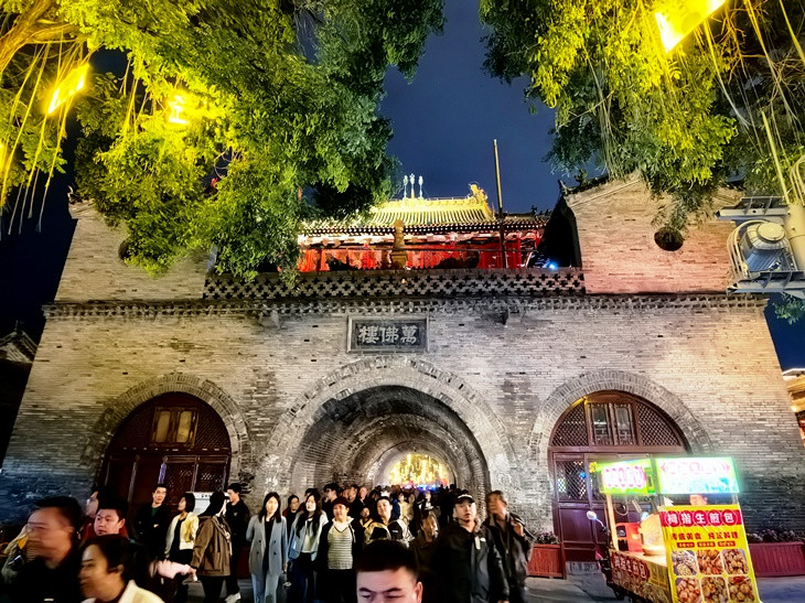 晚上游览榆林古城老街。榆林古城老街形成于明成化年间,全长约1.65km,北起鼓楼,南至文昌阁,是一条集杂货、餐饮、文化、旅游、古建筑为一体的历史老街。