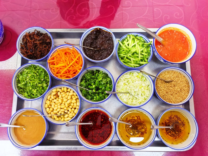午餐在附近的餐馆品尝陕北的特色小吃—抿节。抿节是一种加工成一小节一小节面条的面食,类似山西的拨鱼、陕西的鱼鱼,味道很不错,光调料就有很多种。