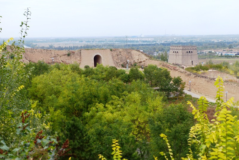 镇北台范围很大,有些部分被掩埋在黄沙之下。下右图的城门原来埋在黄沙之下,将沙子清理后才显露出来。榆林经历了几十年的生态治理,曾经逼近榆林城的毛乌素沙漠,现在已远离榆林。
