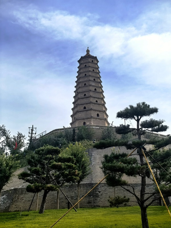 凌霄塔,亦名文笔塔,位于榆林城南榆阳桥东侧山峰上,始建于明正德十年(公元1515年)。凌霄塔原为榆阳寺中之塔,榆阳寺在清同治年间被毁,惟塔独存。凌霄塔为八角形13层楼阁式砖塔,高43米,旧为榆林八景之一-“南塔凌霄”。